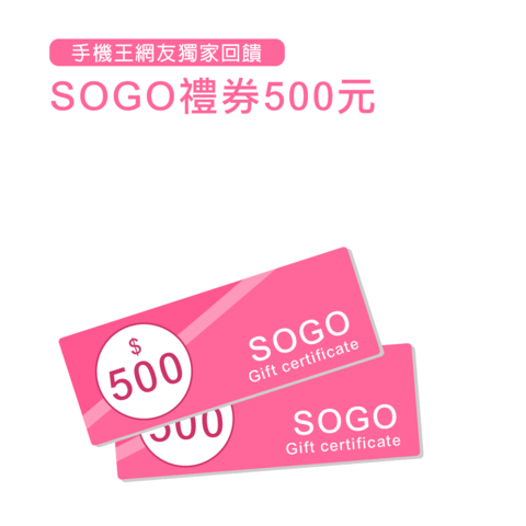 - 本季(即日起至9/30)手機王網友獨家回饋為「500元SOGO禮券」