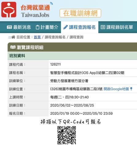 報名網址~https://ojt.wda.gov.tw/ClassSearch/Detail?OCID=126211&plantype=2