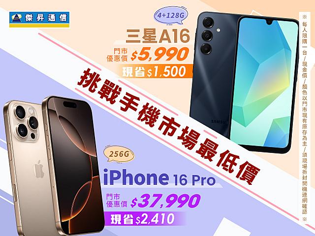- Apple iPhone 16 Pro (256G) 不限色 $37,990