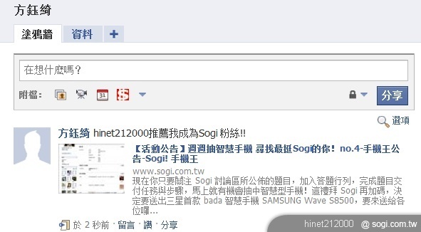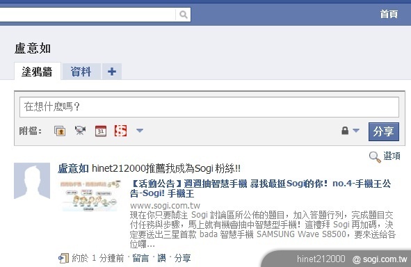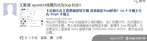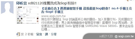 2. 推薦 3 名好友成為 Sogi 粉絲(請好友成為 Sogi 粉絲後,並轉貼本文至 facebook、註明推薦人帳號,並擷取證明)。