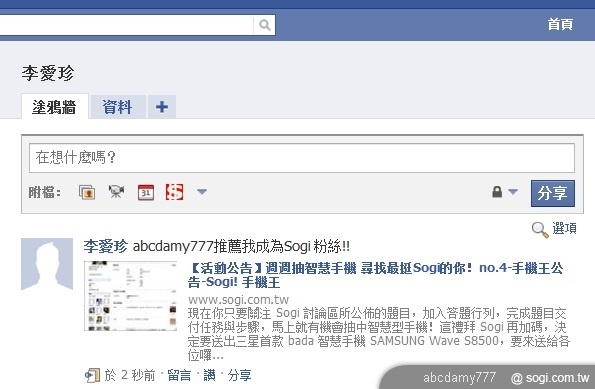 2. 推薦 3 名好友成為 Sogi 粉絲(請好友成為 Sogi 粉絲後,並轉貼本文至 facebook、註明推薦人帳號,並擷取證明)。