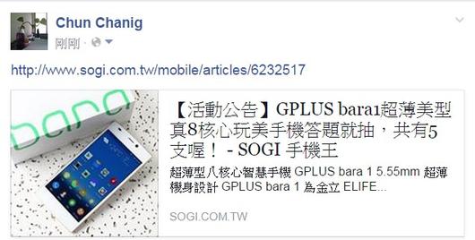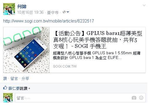 活動B:上傳分享活動圖片-- GPLUS bara 1 手機乙支(不挑色) - 2名