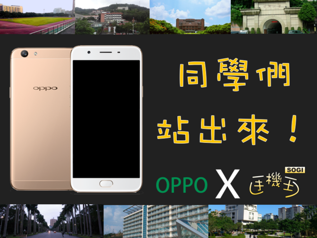 你的學校特色十足、歷史悠揚?或者你的學校好吃好玩多到介紹不完?手機王與 OPPO 邀請高中職、大學在學學生,以文字、照片介紹你的學校,同時體驗 OPPO F1s 的 1,600 萬畫素前鏡頭拍攝實力,還有美顏 4.0 功能,讓你一秒變身知名校園帥哥 / 正妹!文章獲得最高迴響者,更可以直接免費將 OPPO F1s 及限量版巴薩後背包帶回家!同學們~你還等什麼~快來報名!