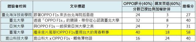 首先揭曉 OPPO F1s 體驗者文章評分結果~
