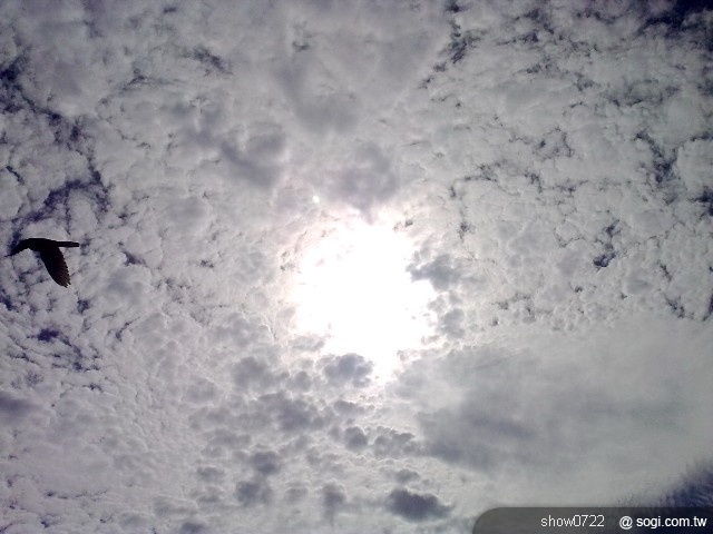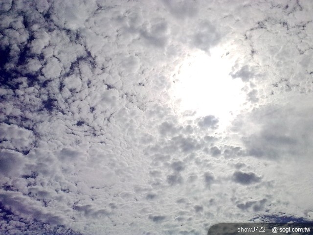 剛好雲層把太陽周圍包起來 中間一個空洞 露出太陽 還滿特別的景象