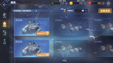 抽卡不花課金買來的石,而是花金幣和方塊;出擊、解任務、從建造設施收取都能得到它們。抽的方式也很特別,不是按一下就亮出結果,必須在船塢等待船造好,時間從幾分鐘到幾小時都有,很有船是真的造出來的感覺。不想等的話也能使用加速道具直接完工,或是睡前造船醒來直接看結果。另外,碧藍航線的稀有度跟實際強度不太有直接的關係,有些SR甚至比SSR還好用。SSR也不難收藏,出貨率高達7%!我是只要夠萌,什麼級都沒問題 XD
