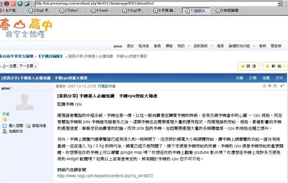 另外,手機上建置內建瀏覽器已經有很久的一段時間了,但受限於頻寬大小與硬體效能,讓手機上網瀏覽的功能一直沒有被重視,但在進入 3g / 3.5g 的時代後,頻寬已經不是問題了,接下來便是手機效能的改善,手機的 cpu 便是手機效能的重要關鍵,你想要在你的手機上可以瀏覽 google map 嗎?你想在你的手機上觀看 youtube 影片嗎?你還想在手機上有許多方便易用的 widget 軟體嗎?如果以上答案是肯定的,那有關於手機的 cpu 您不可不知。
