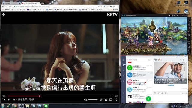 筆者追劇都是利用電腦,最常碰到的狀況就是一邊追劇,還另外開別的軟體或是遊戲模擬器、甚至另一個視窗是在處理工作。(如下圖所示)