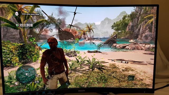 ▼ 筆者選了 刺客教條:黑旗 森林沙灘場景,除了 人物暗處的服飾配件 分明,甚至遠方的樹木綠嶺 都是清清楚楚。