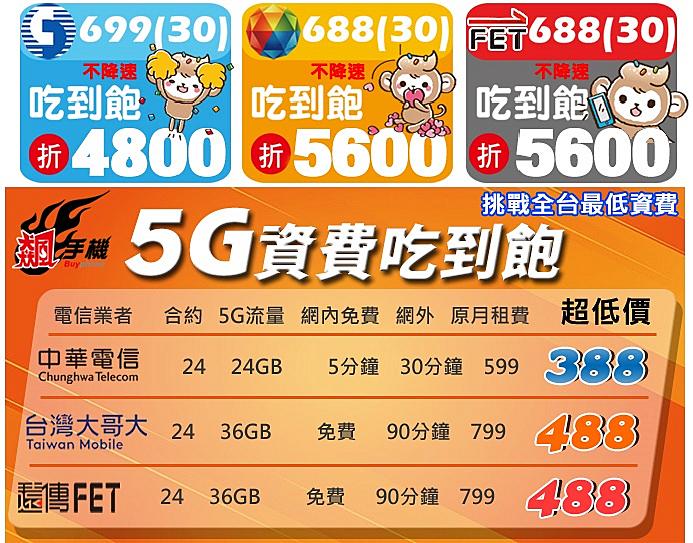 月租 688(30) → 現折 $5600(4G吃到飽不降速)