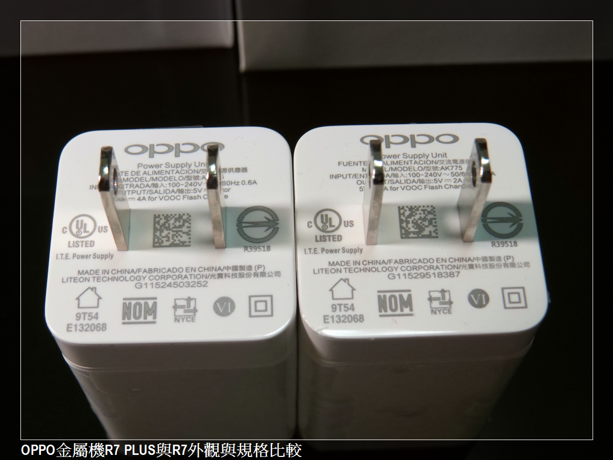 ▲左側較小的為R7的外盒,右側為R7 Plus,內部皆有充電頭,充電線以及耳機。