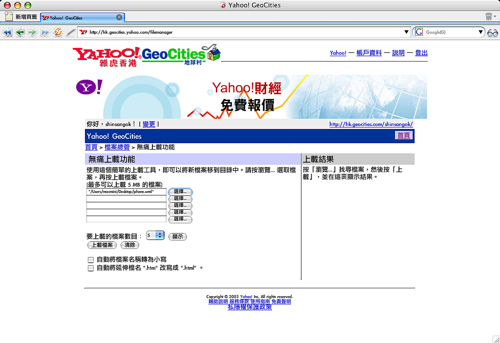啟動Yahoo帳戶之後,你所上傳的檔案都會以你的帳號為基準,您現在的網址主頁就是