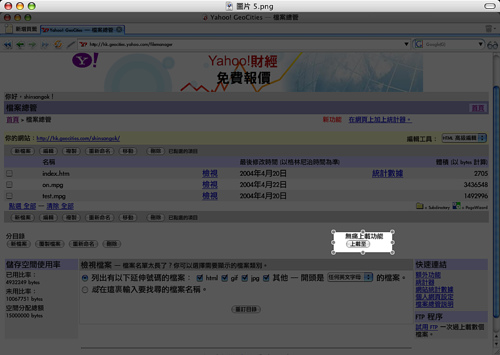 本此推薦Yahoo!所提供的Geocities(地球村)服務,個人是使用英國的空間,此篇推薦香港空間,因為介面為繁體中文,對讀者比較友善,另外為甚麼不推薦Yahoo!奇摩呢? 因為他們沒有提供地球村的服務,Home.kimo,com服務也已經收攤了,除此之外,會推薦Wml來作為線上電話簿的主要原因是WML語言實在太冷門了,冷門到Google都搜不到,所以對於隱私的保障也是有相當的可靠度,不知道這是不是WML語言的悲哀啊