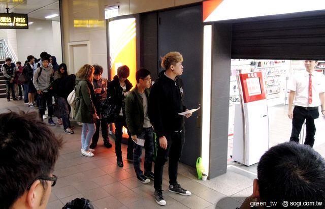 10/25 iPhone 5s 和 iPhone 5c 開賣首日,全台灣最早開店的遠傳台北車站直營門市,不到 7 點已聚集超過 20 位排隊民眾,形成長長的人龍。第一位排隊的杜先生凌晨 2 點就來了,他表示自己是 24 歲的上班族,9 點要上班,看到遠傳官網有限量 iPhone 5s 現貨供應的訊息,所以特別選在 7 點就營業的遠傳台北車站直營門市排隊購機。