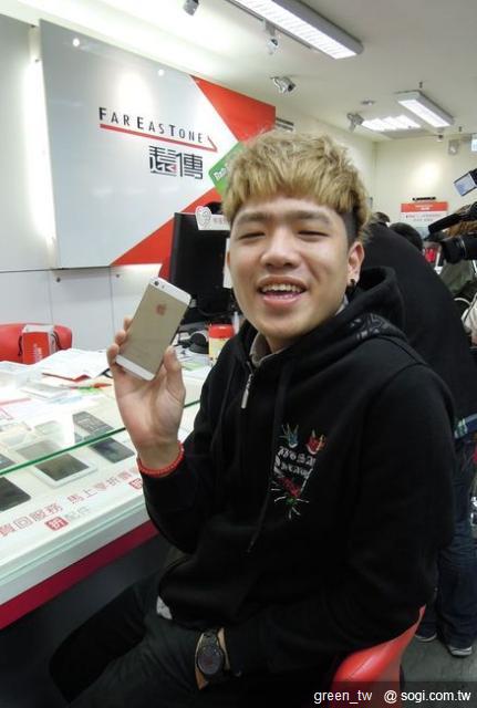 他是遠傳忠實老客戶,原本用 iPhone 4S,今天想辦 iPhone 5s 金色 16G 遠傳的一年方案,這樣如果明年有新的 iPhone 推出,就可以再換新機。很高興能成為今天全台灣第一個拿到 iPhone 5s 的人,拿到手機覺得很漂亮很值得,就算有人出高價也不會出售,會留著自己用。