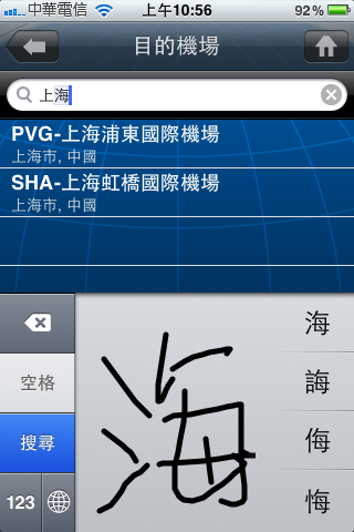 『目的機場』中文或英文都可以,我寫了上海,就跑出上海兩個機場可以選擇: