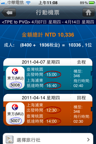 介紹過一個很新鮮的旅遊訂票方式,透過iPhone、Android手機訂機票,最近有同事要出國剛好來玩玩看,沒想到真的超方便的!