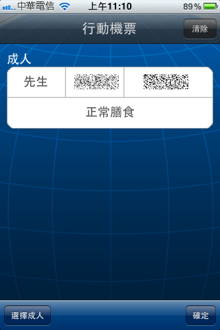 接下來,就是重頭戲了,按下『機票』按鈕後,會跑出這個畫面;