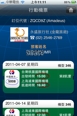 他還說,如果我有其他的訂位記錄,輸入資料後一樣可以查到,真的那麼神奇嗎?我現在沒有其他的訂位,所以不能試到,下次有機會再來試試看~