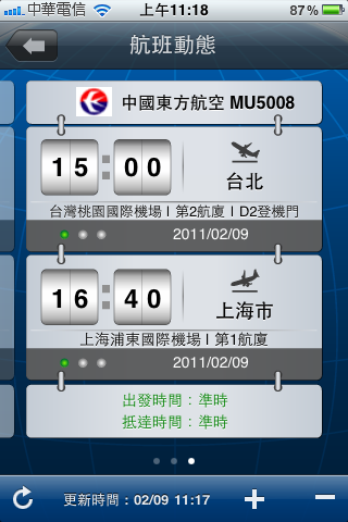最後還有一個『航班動態』的功能,航空公司、航班編號那邊打進去後,按查詢: