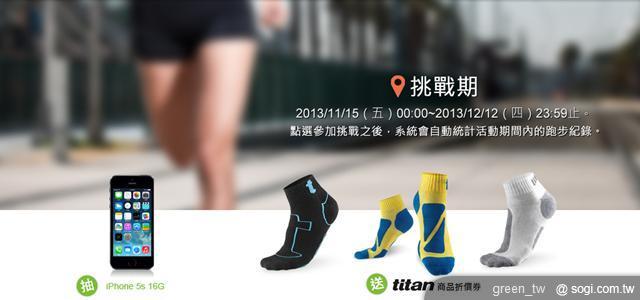 同時,挑戰頁面還可顯示所有參賽者的排名,砥礪自己再進步。活動期間成功累積100公里的會員,可在12月15比賽當天,於mySports攤位出示帳號後兌換titan商品100元折價券1張(限量800張),現場填寫抽獎券還可再參加iPhone 5s16G抽獎(1名)!