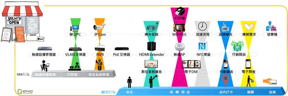 IOT 相關的產品,我們推出 HD 拍攝專用的網路攝影機、擁有主動式安防功能的錄影機及無線影音傳輸器,整套產品是根據智慧商店前後台需要的影像處理情境而設計開發,能完成讓人意想不到的強大影像處理效能。