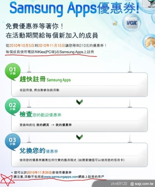 正確要透過電腦端KIES裡的APPS去註冊,或是用手機端去註冊