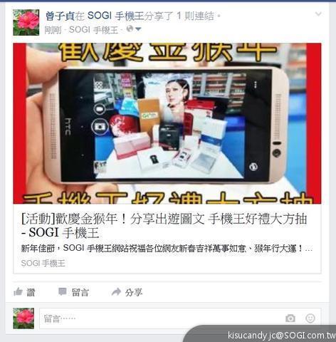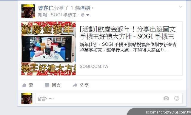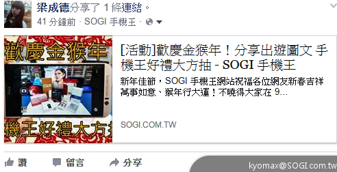 - 登入 SOGI 並至活動文章頁面,以站內回覆方式,和大家分享自己的新春活動圖文與 FB 分享截圖
