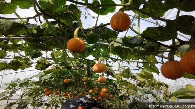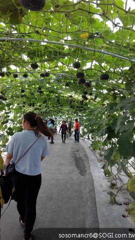 坐在瓜棚下品嚐,好悠閒!!