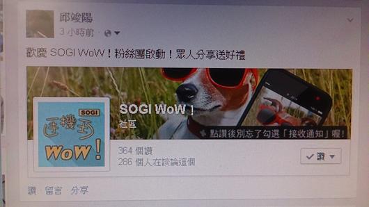 「歡慶 SOGI WoW!粉絲團啟動!眾人分享送好禮」