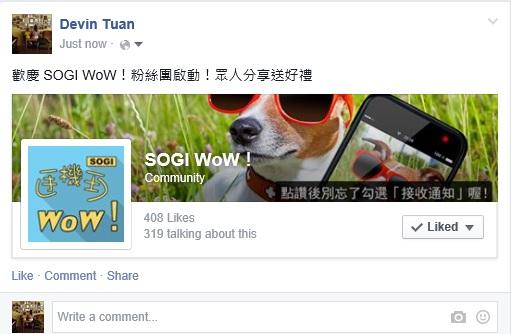 歡慶 SOGI WoW!粉絲團啟動!眾人分享送好禮