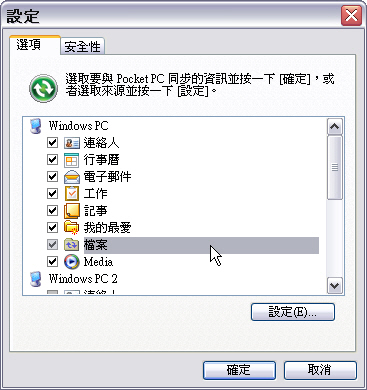 這裡就把「檔案」勾起來,就可以同步手機內「My Documents」裡的全部檔案。