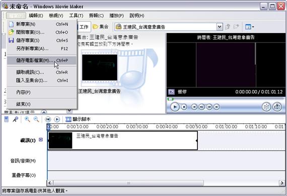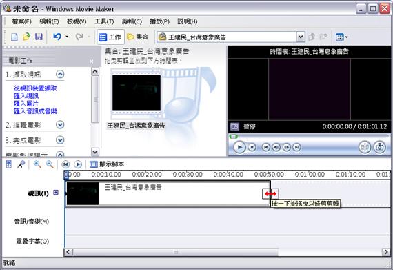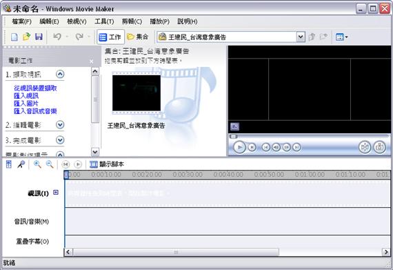 開啟後就把電影檔放進來,小弟就用王建民拍的台灣意象廣告來實驗一下。