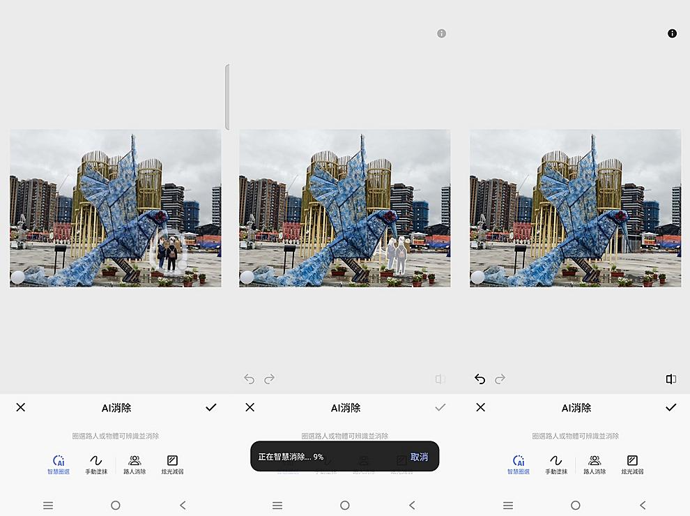 其中AI消除更是好幫手,過往照片中一堆亂入的人事物,都還要上網求助高手協助,現在自已就可以輕鬆完成大部份的照片,這次體驗來到燈會以及出門拍攝時時不時入鏡的路人不想要的雜亂背景等,就直接打開圖片編輯中使用AI消除,透過智慧圈選、手動塗抹、路人消除不同選項模式,可以很聰明的把不想要的人物去除,留給圖片中保留的主體乾淨呈現,另外vivo X200 Pro因應網上討論的炫光問題,可以在照片拍攝選項內設定炫光補正外,也可以在相片編輯中選擇炫光減弱進而優化照片。