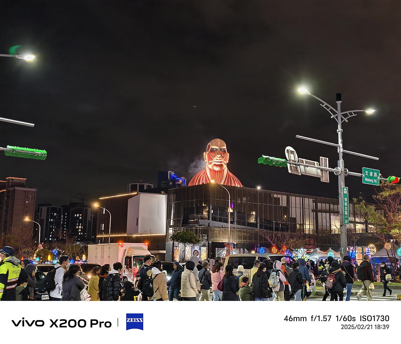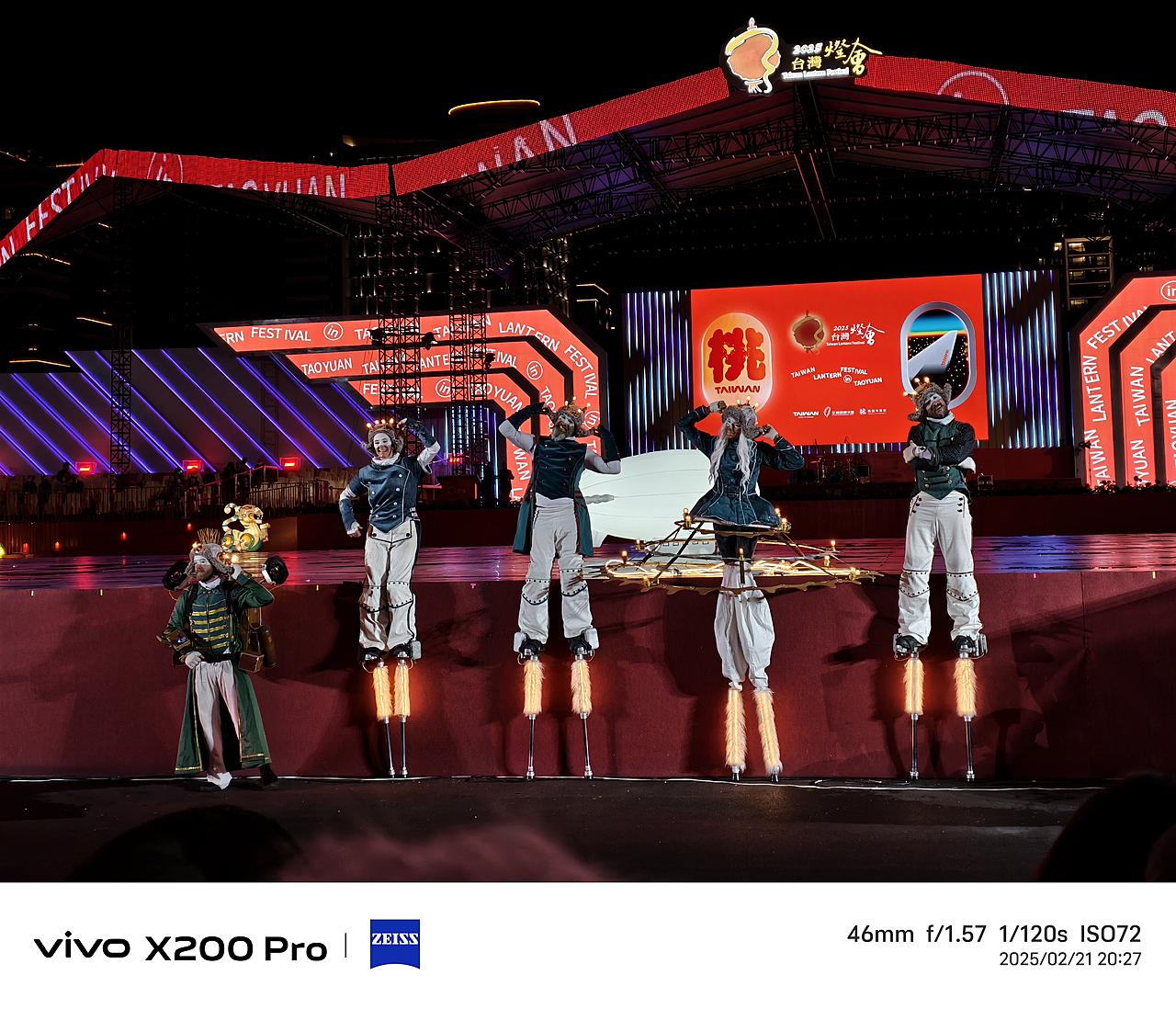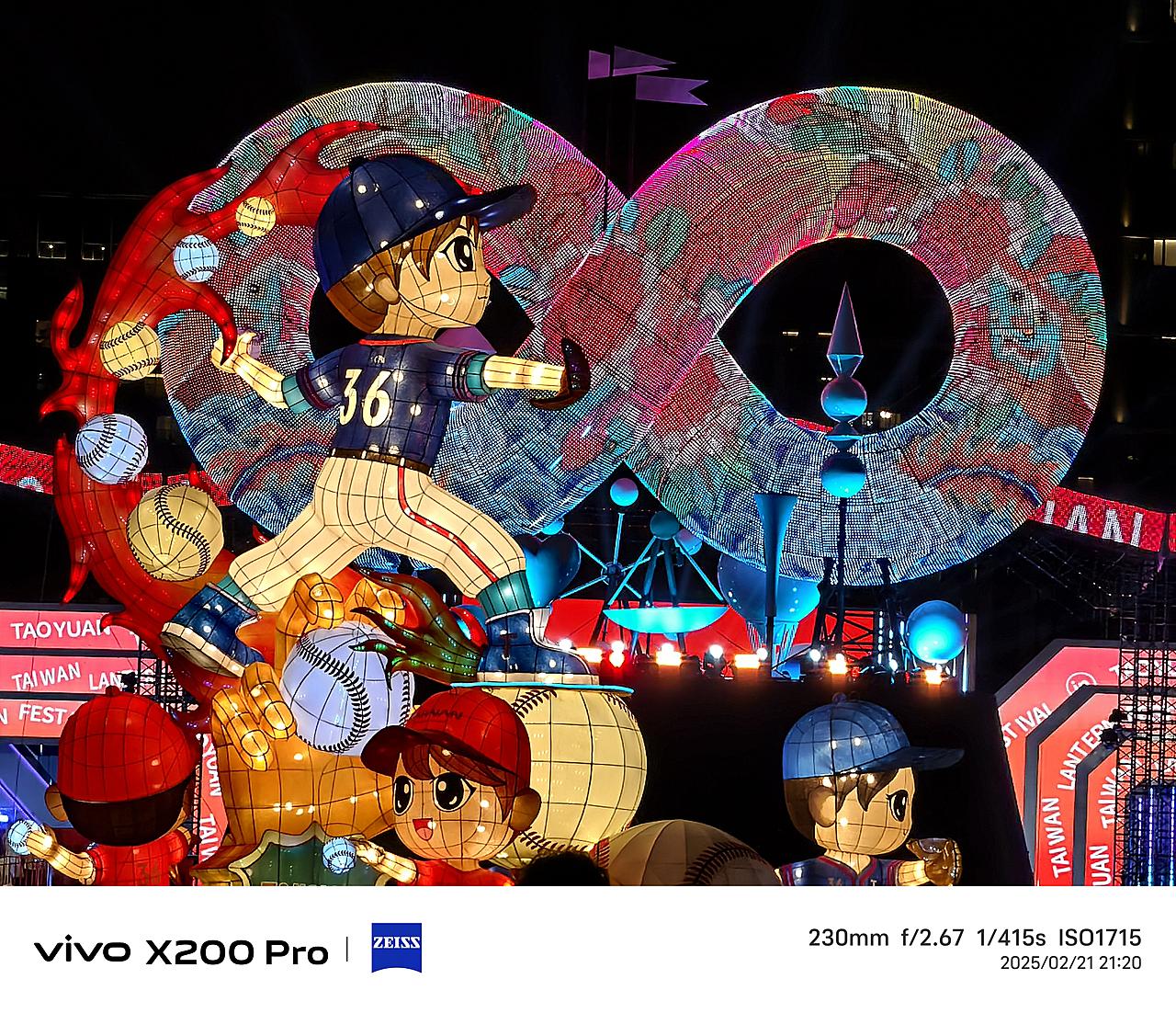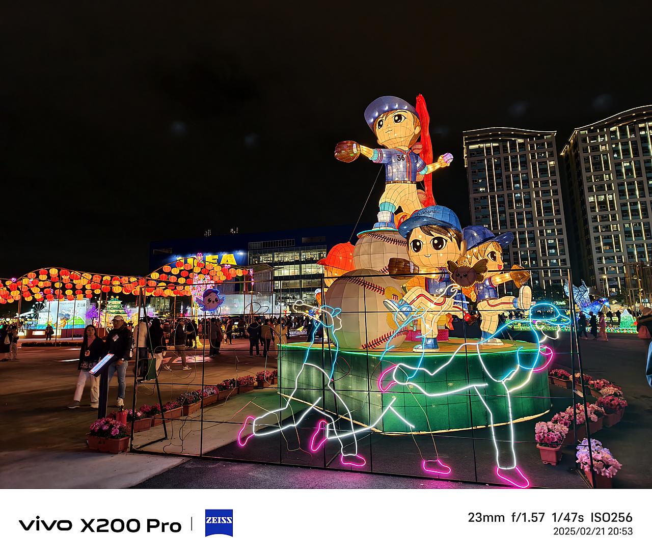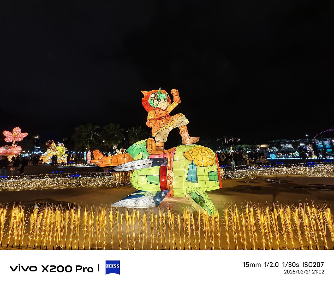 此次體驗分別環繞著燈會現場、表演舞台以及實物等主題展開,造訪到2025台灣桃園燈會的現場,在晚間熱鬧點亮燈區的時刻,隨處可以看到不少人拿著相機手機在拍攝燈會美景,也立馬拿出vivo X200 Pro記錄下熱鬧夜色下的燈光鏡頭呈現的影像真是相當不賴。