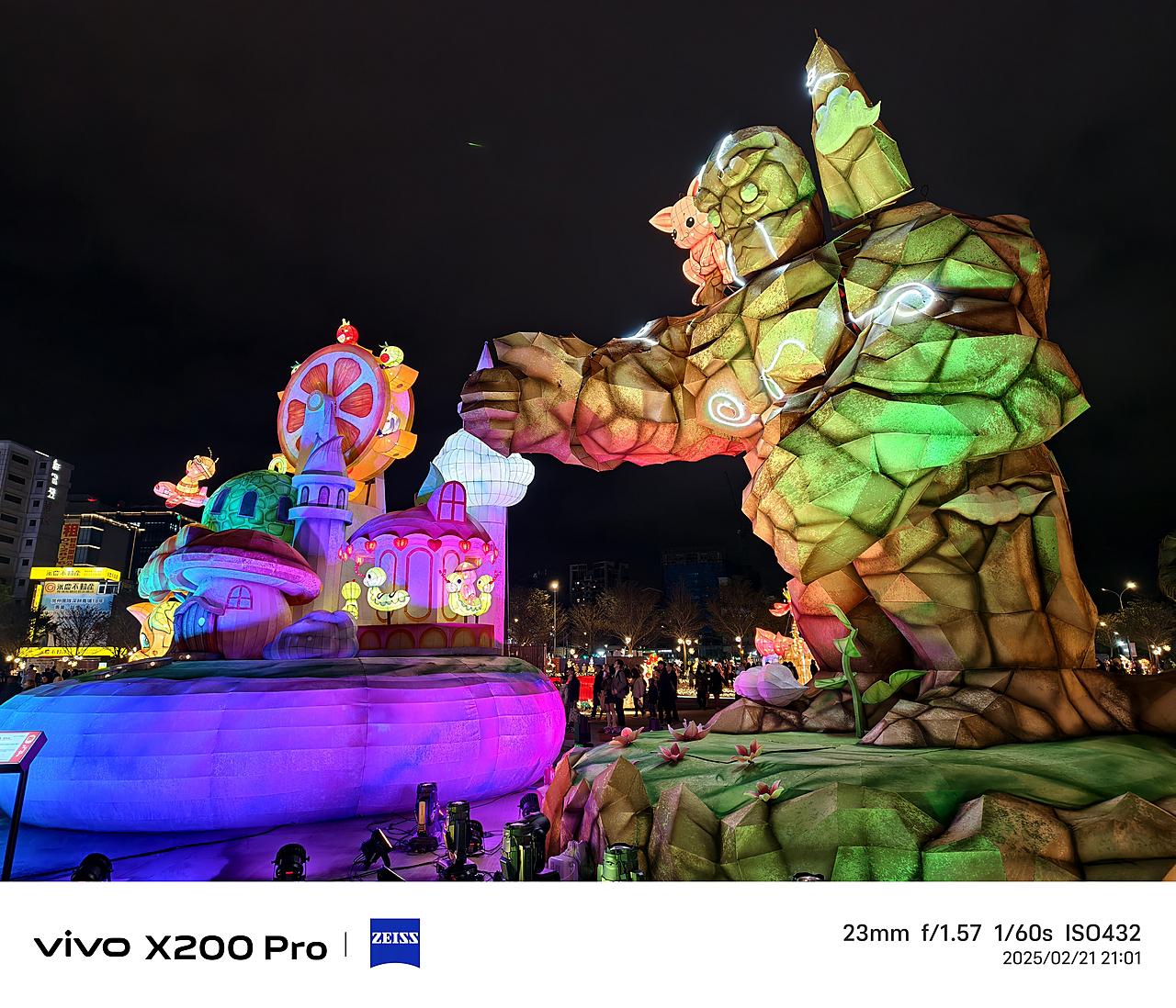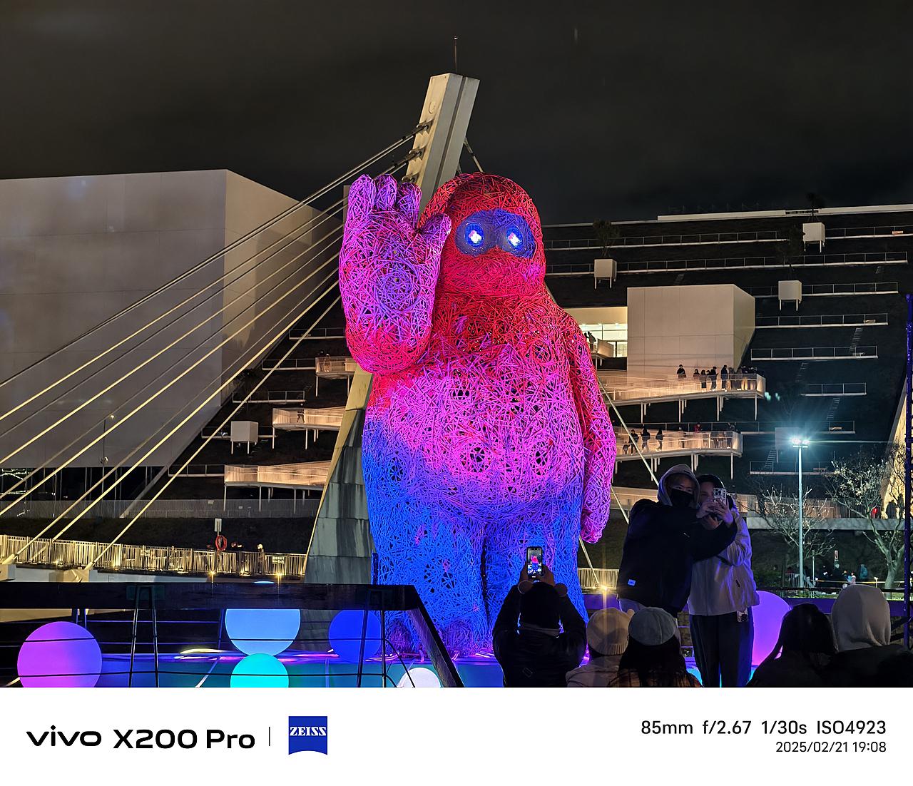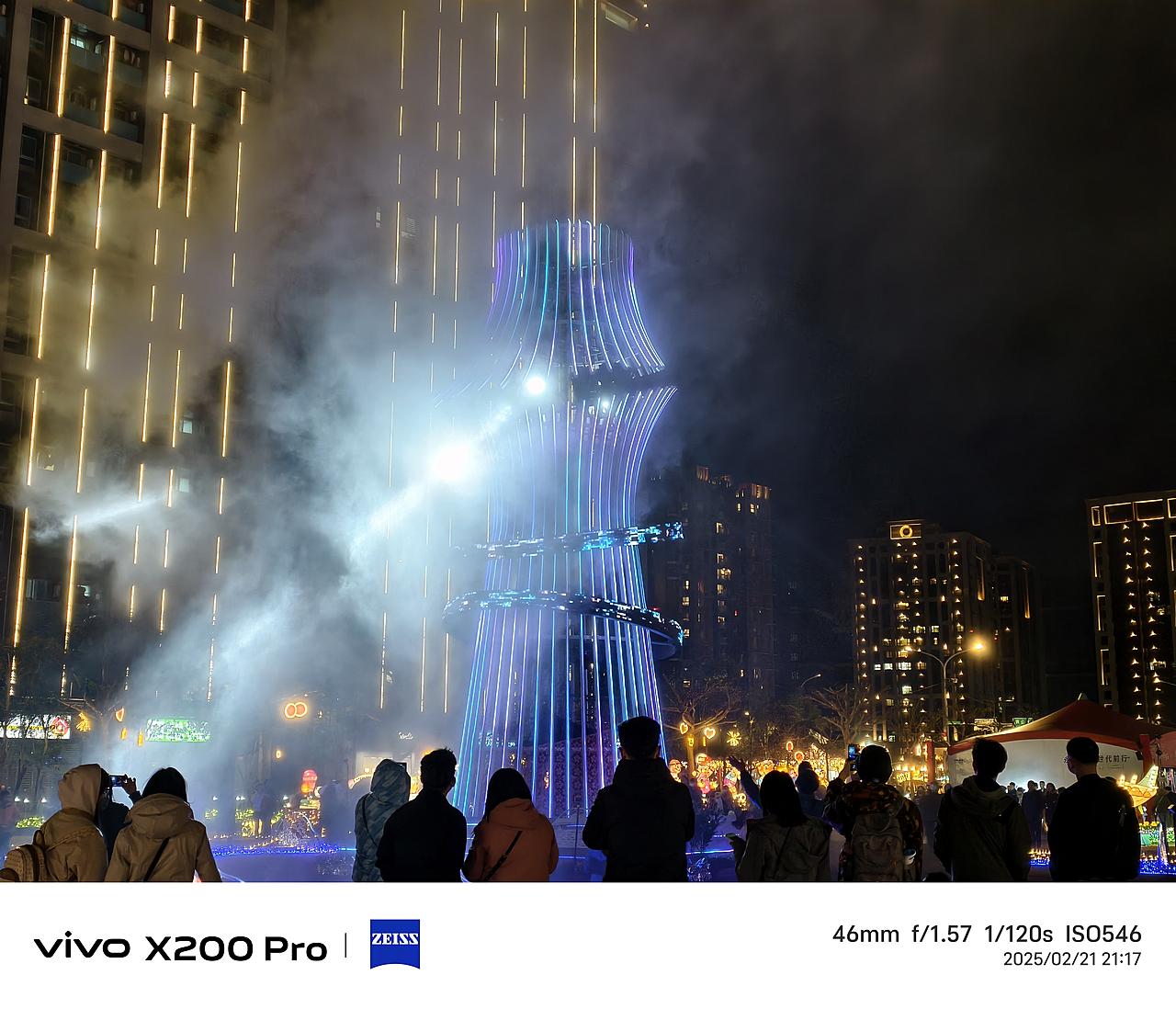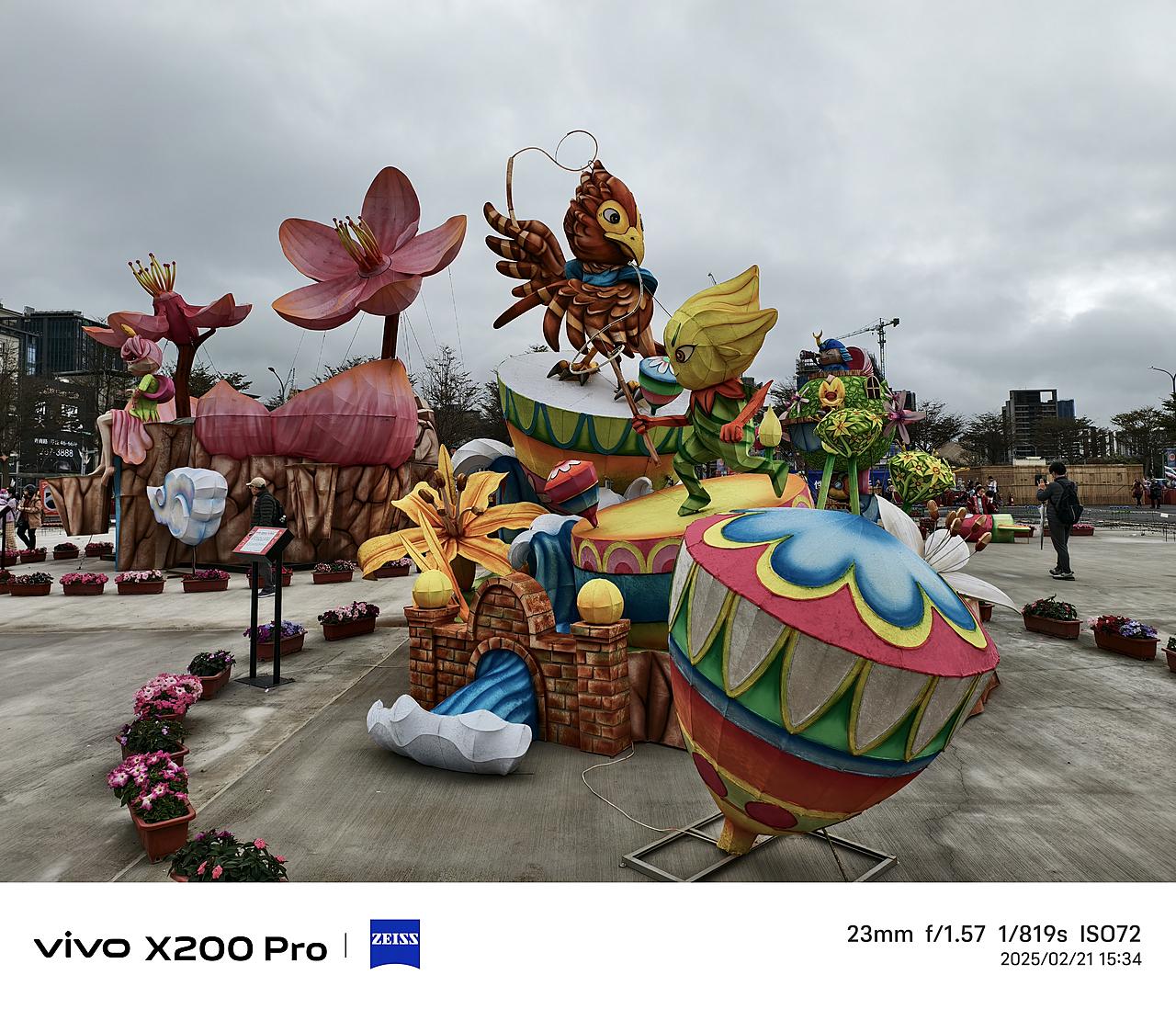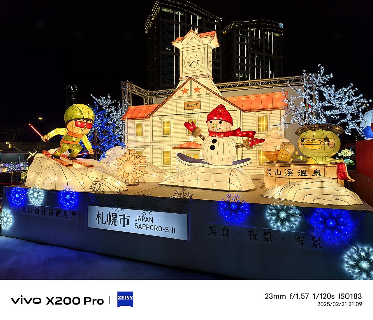 此次體驗分別環繞著燈會現場、表演舞台以及實物等主題展開,造訪到2025台灣桃園燈會的現場,在晚間熱鬧點亮燈區的時刻,隨處可以看到不少人拿著相機手機在拍攝燈會美景,也立馬拿出vivo X200 Pro記錄下熱鬧夜色下的燈光鏡頭呈現的影像真是相當不賴。