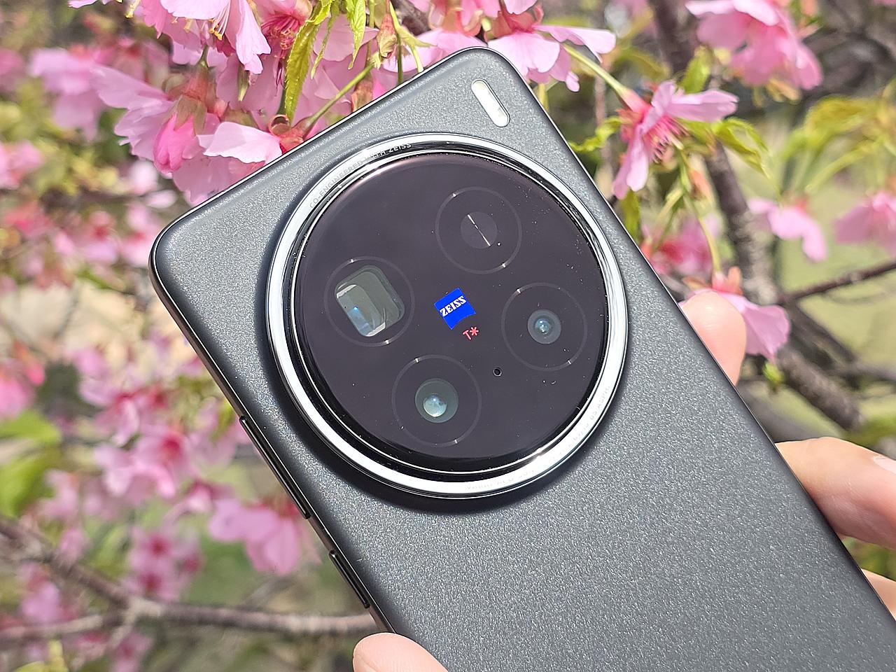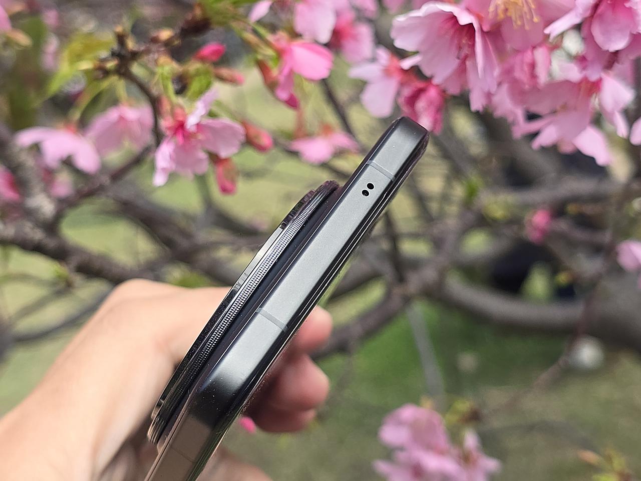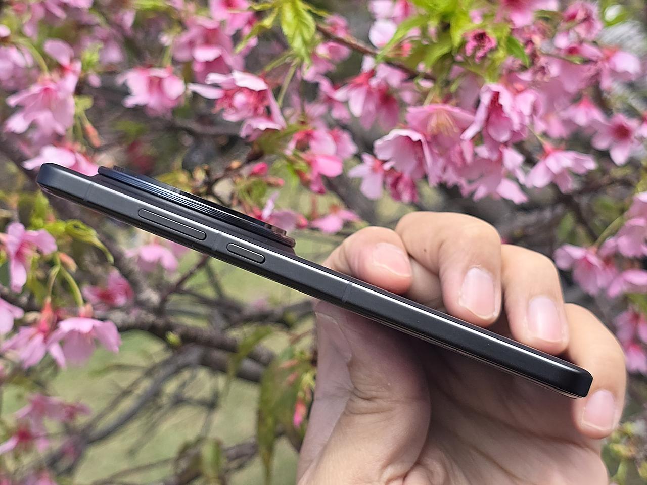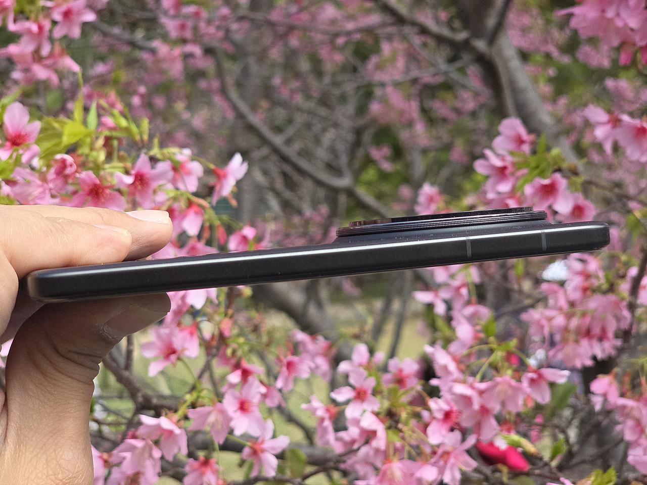 讓粉色的櫻花來襯托著vivo X200 Pro看看各部元件構成,機身顏色上分別推出鈦灰、辰夜黑兩色可供選擇,上手體驗的則是低調又沉穩又內歛的辰夜黑,機身尺寸162.36x75.95x8.20重量223g較前一代更輕薄的機身連帶著設計感使得上手持握質感也很順手。