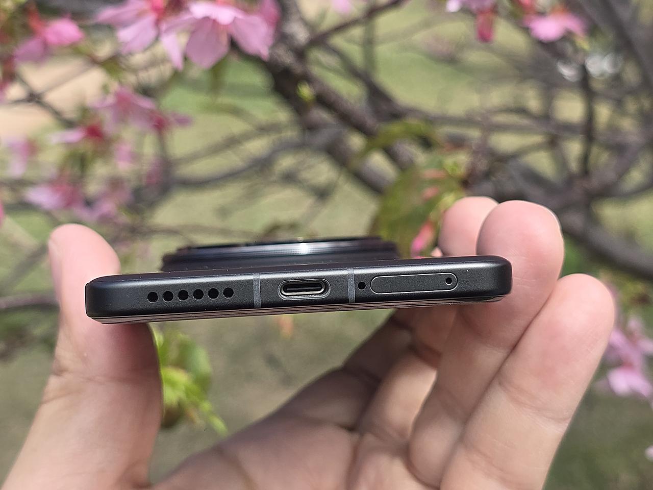 vivo X200 Pro機底部配置由左至由分別是則是喇叭孔、USB-C、麥克風和卡槽的部份。