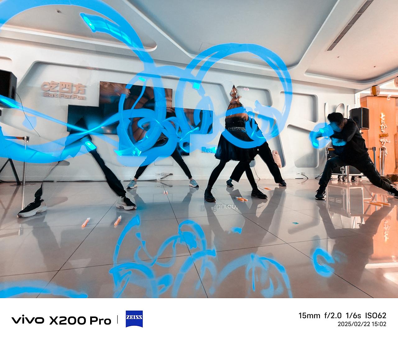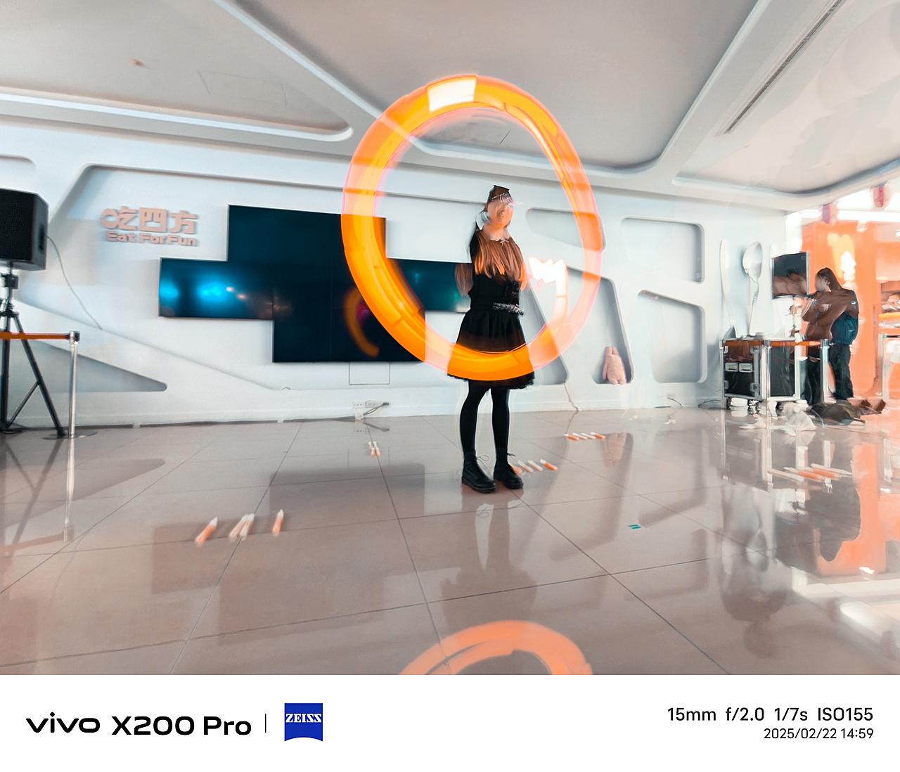 臨時遇到也饒有興致來小試一下vivo X200 Pro的光軌效果,雖然拍攝條件上沒有搭配腳架穩定跟昏暗環境助力,只能靠手持簡單小拍一下以2S拍攝左右嚐試看看果然還是有光軌效果的,不過也因為打藝的手速很快反而產生的是紛飛繚亂的遊移光軌,但也是從中產生有趣的創作氛圍。