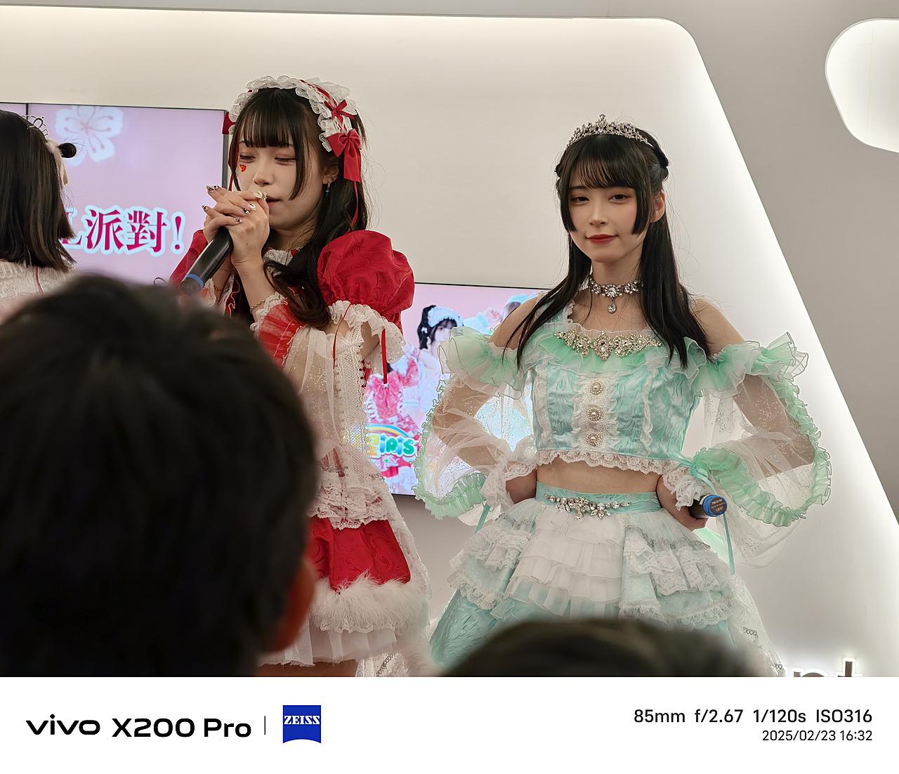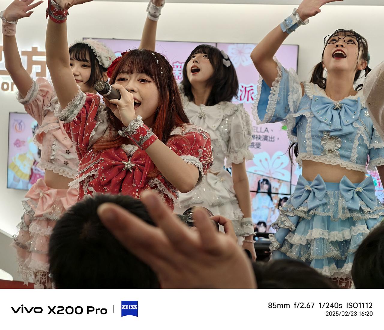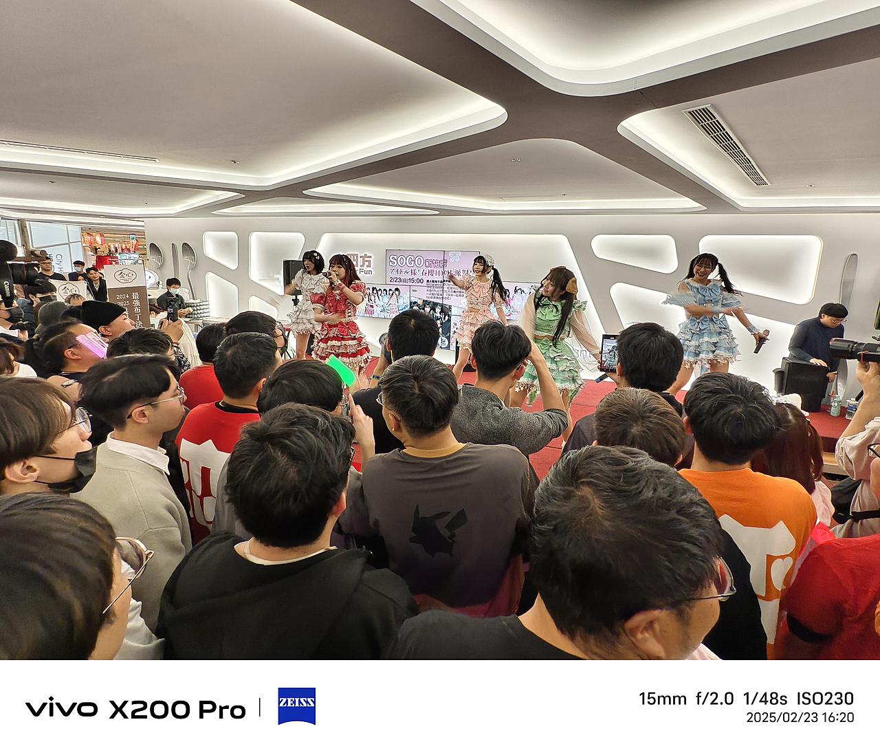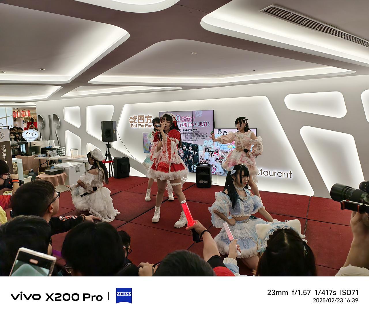 作為新一代演唱會神機vivo x200 pro無論是到演唱會、表演現場,真的是很適合拍攝舞台表演,此時也記錄下百貨展演的アイドル様!春櫻IDOL派對!活動現場邀請到共有四團IDOL充滿熱情與青春洋溢的歌聲與舞台演出,不過到的時候較晚只看到兩團的精彩演出,分別是虹星iRiSTELLA跟木苺FRUCTOSE完全可以感受到人聲鼎沸應援的熱血感受。