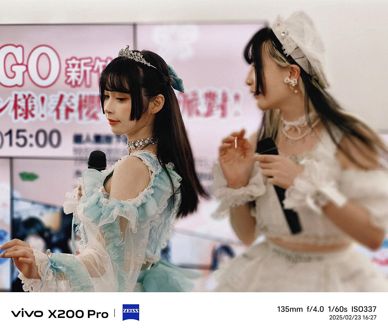 影片:vivo x200 pro 舞台 虹星iRiSTELLA アイドル様!春櫻IDOL派對!,不過錄影時會因當下的環境空間光源因素,需要自行調整進光是使用上要注意的一點,此模式下影片畫質最高1080P。