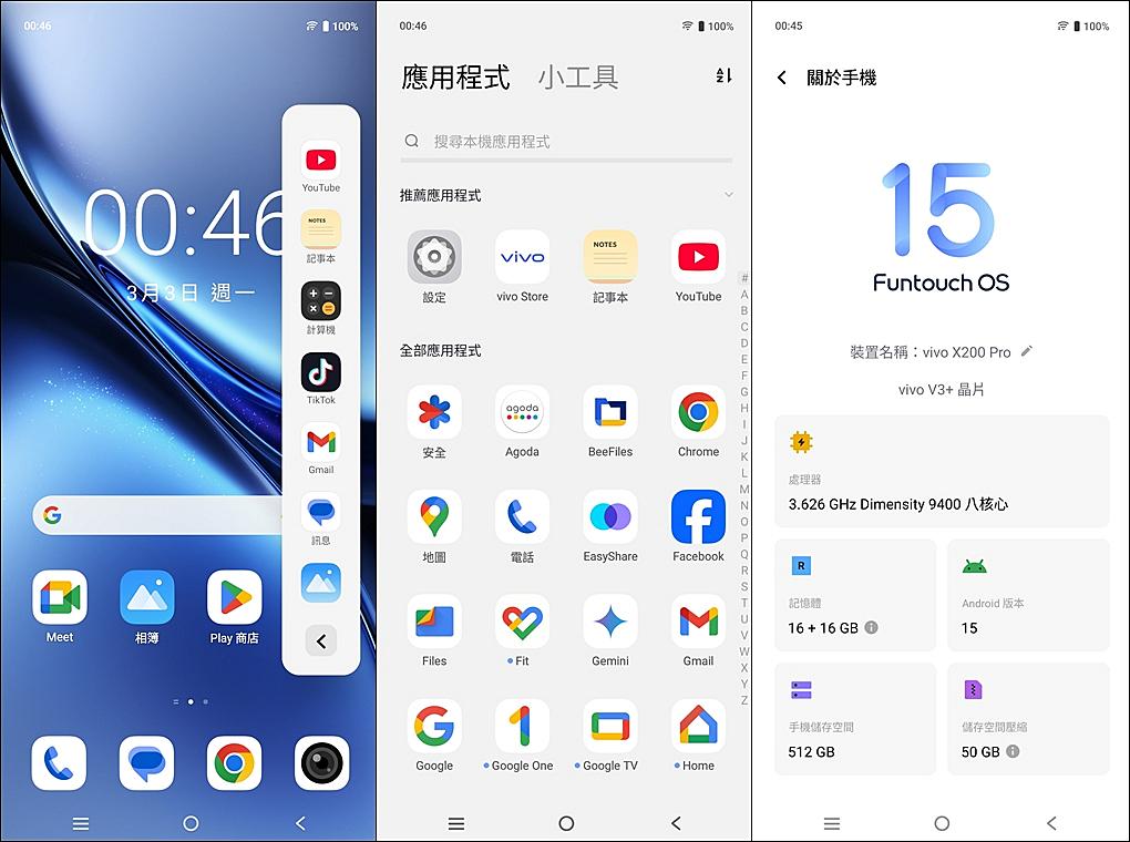 操作介面上vivo x200 pro為基於Android 15的Funtouch OS 15作業系統,對於Android使用者來說上手度會更快,但一些相關功能仍需要略為摸索一下。
