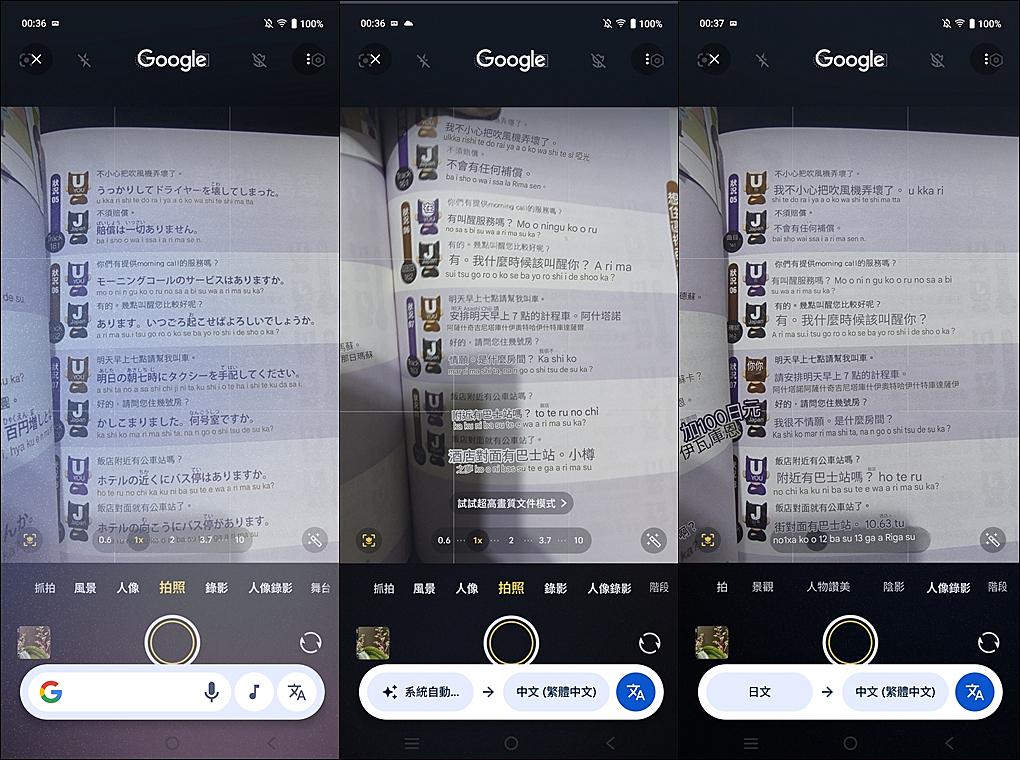 此外螢幕翻譯、通話翻譯也是手到擒來的,拍攝或記錄下的文字就可以透過翻譯來辨識,簡單使用日文書對照一下,翻譯的表現也幾乎與課本無異,但仍要取決於網路的字庫內容精準度為基準。