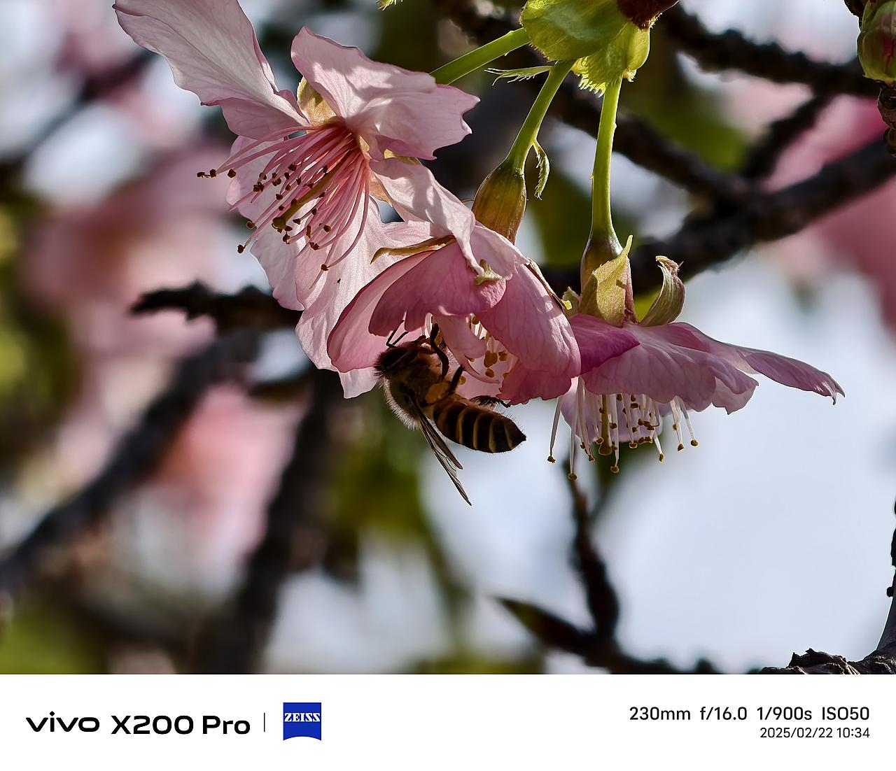把握櫻花季滿開的尾巴,帶上vivo x200 pro一同探訪粉色的的浪漫,開啟鏡頭下的微距更能拉近距離觀賞記錄著花瓣紋理和花蕊黃色的香蜜,以及穿梭飛舞蜜蜂絨毛翅膀凝結那一刻稍縱即逝的瞬間。