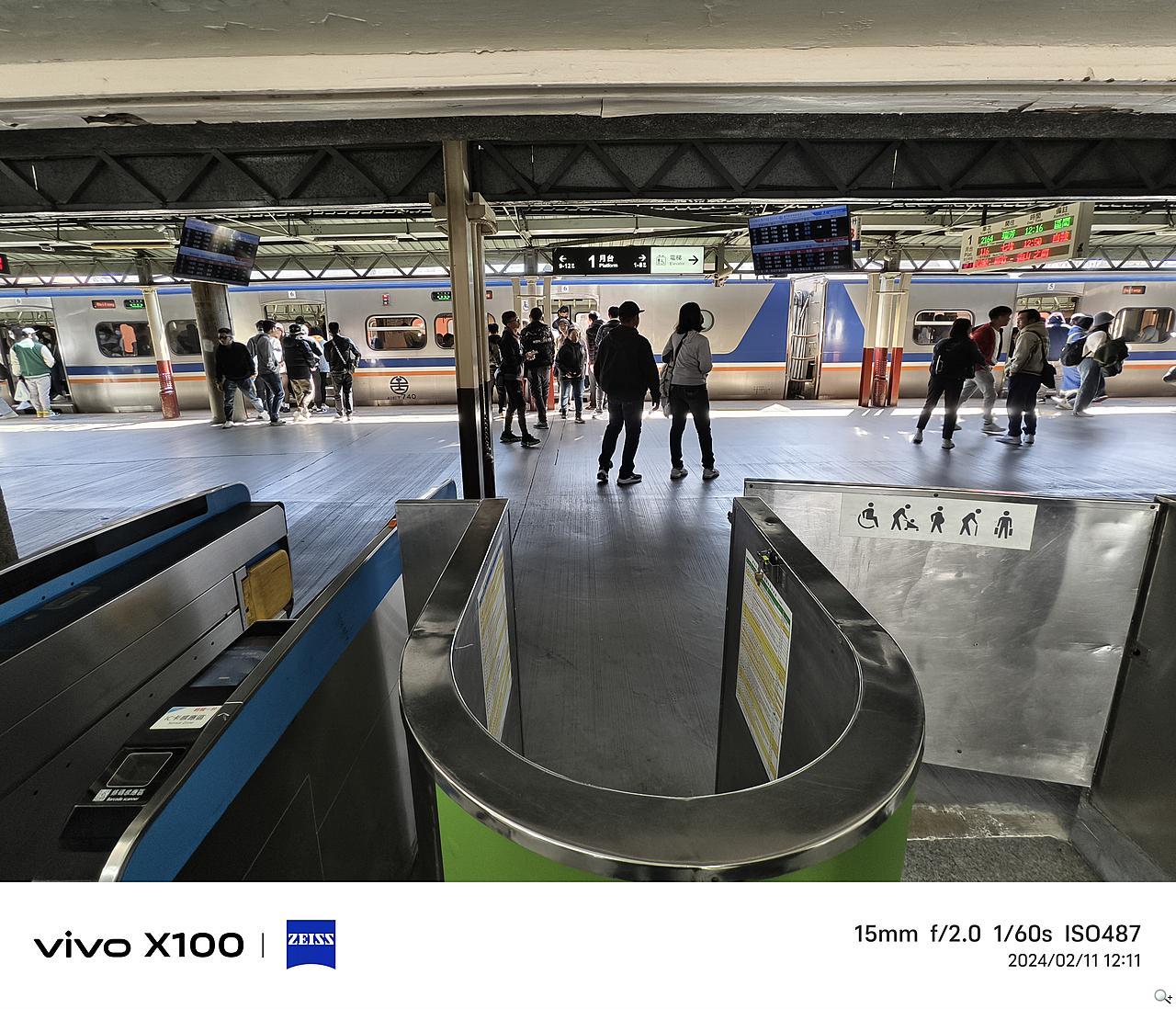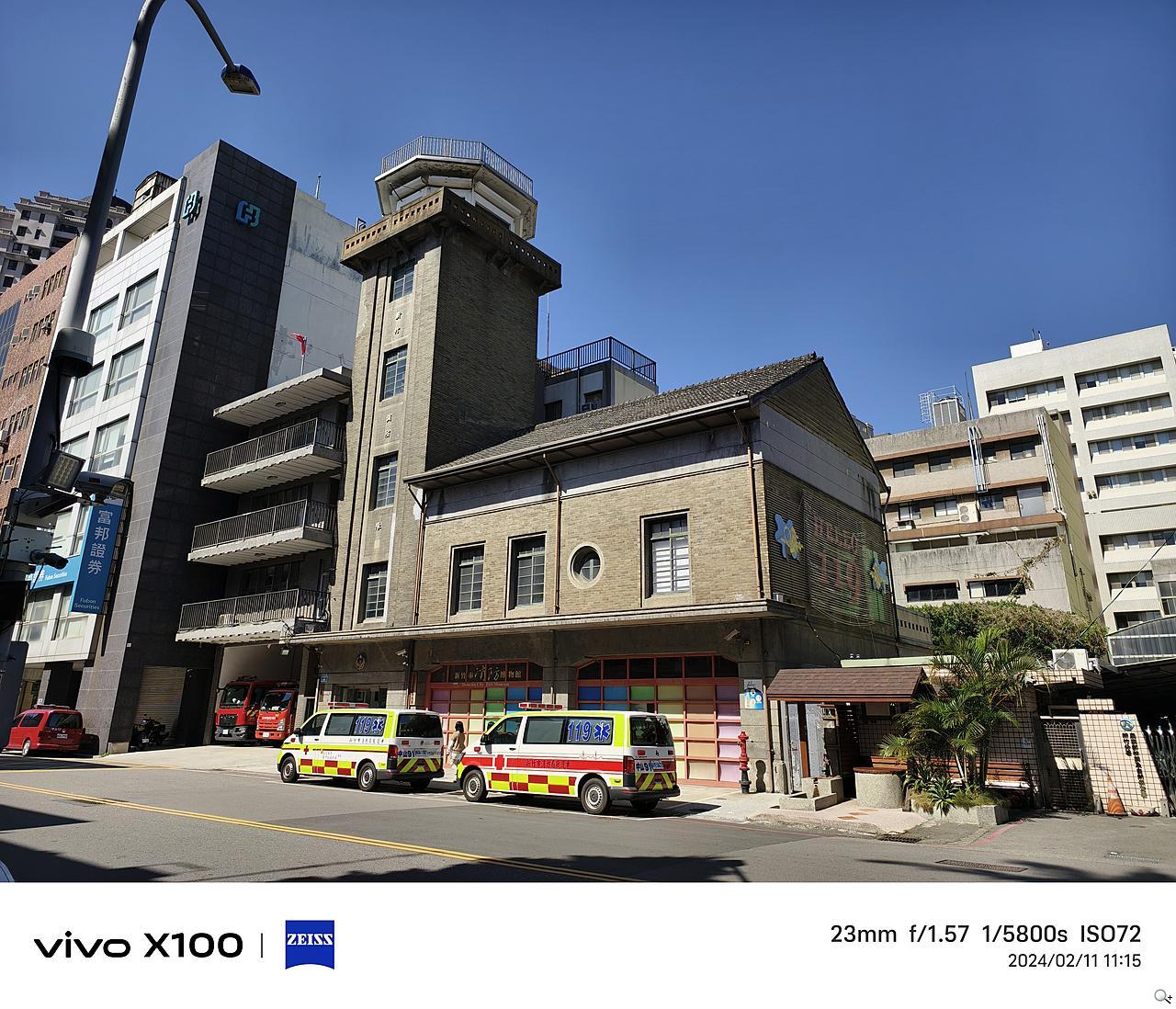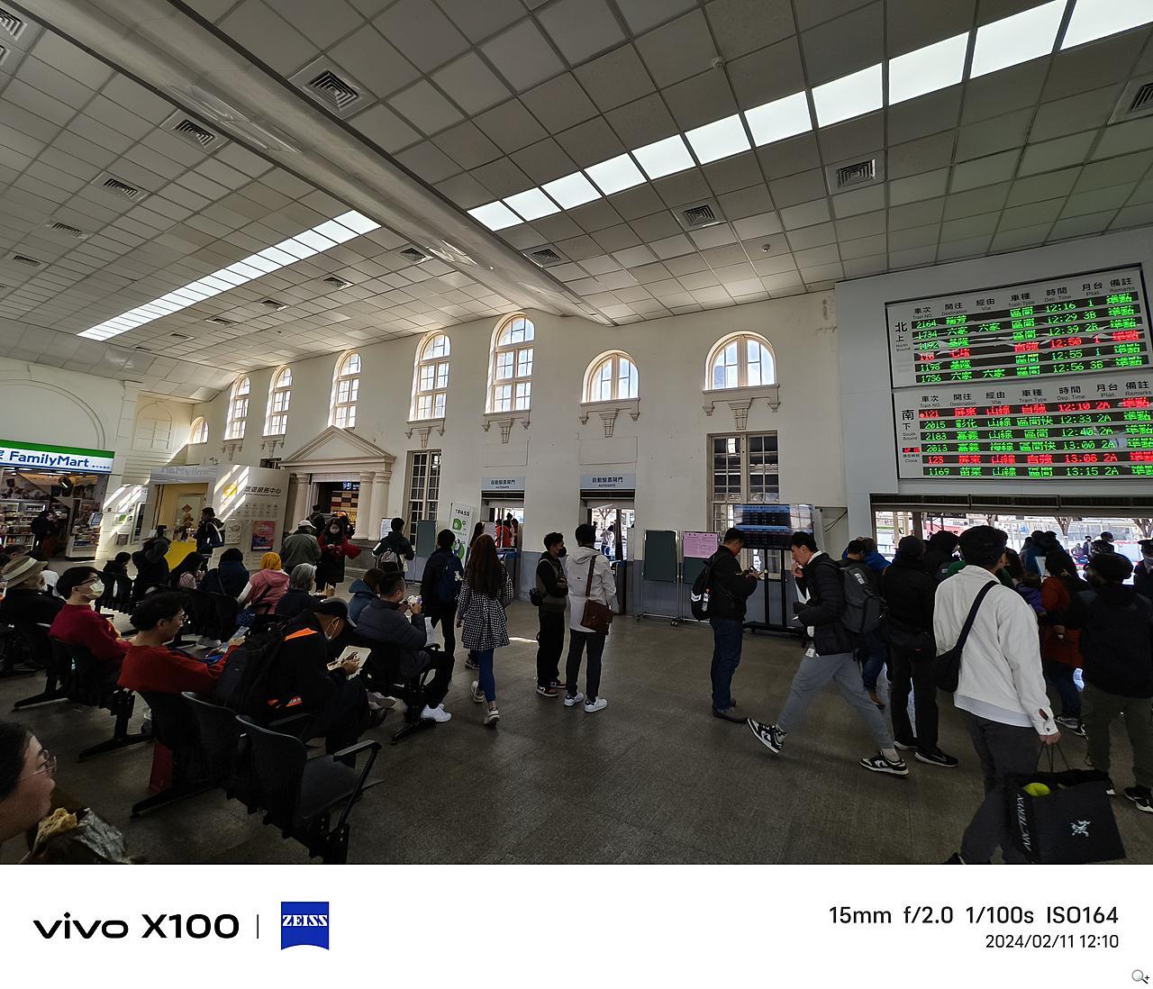 整體建築採以兩段式陡斜的屋頂與老虎窗和屋頂上的座鐘塔,入口門廊變體柱和紅磚牆壁浮雕裝飾,透過vivo X100廣角來容納新竹車站與站前廣場的景色很是理想。