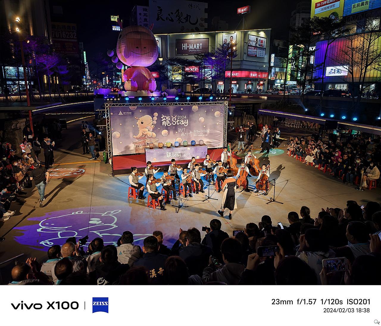 夜晚的東門圓環也有一份古蹟的沉澱感,而每逢節日也會作為市中心佈展的核心,這次帶著vivo X100在新年春節時則是龍年燈節主題呈現,搭配上燈光不一樣的氛圍,以vivo X100蔡司的全焦段,拍錄下這一場新年燈節開幕表演時份。