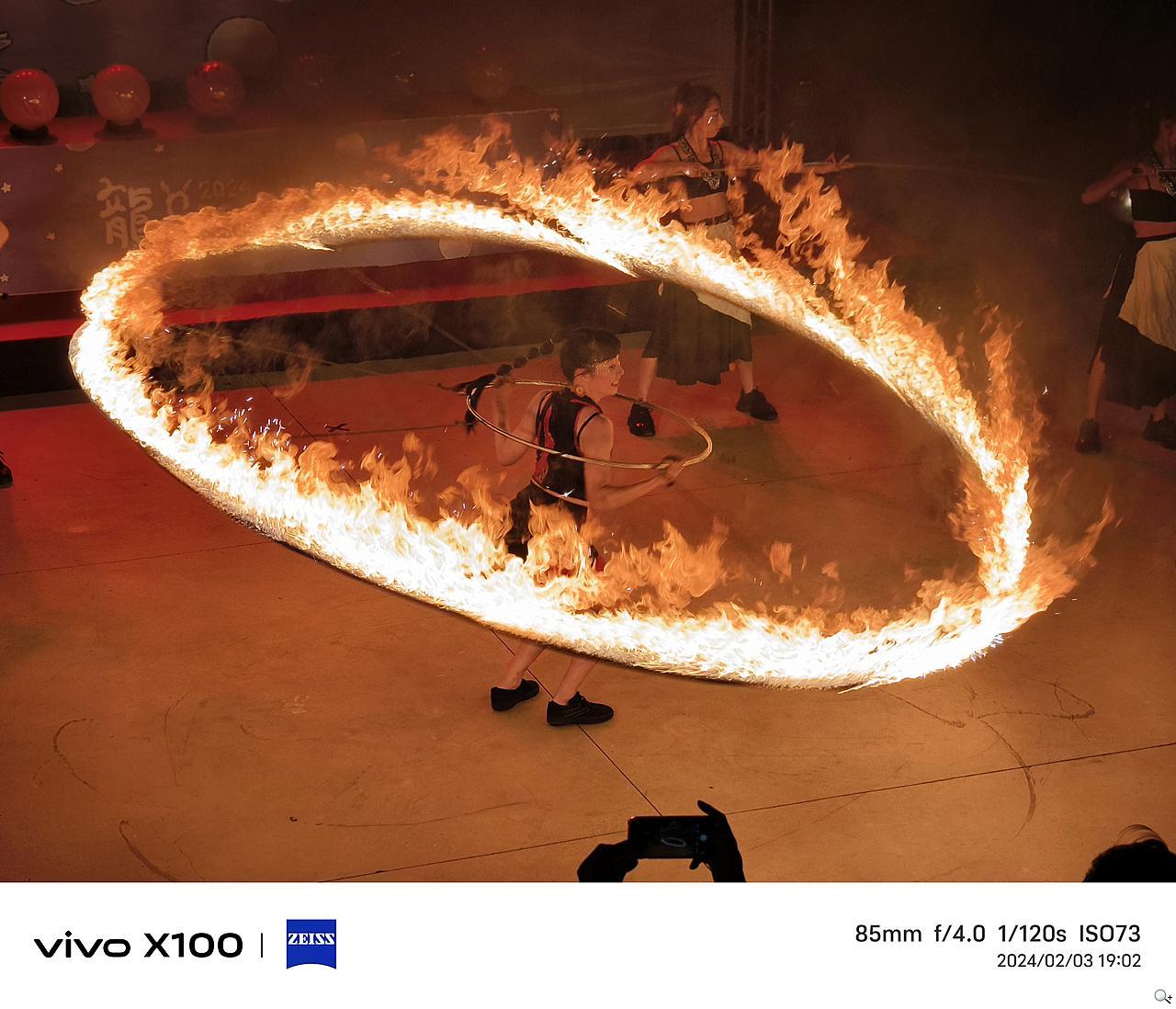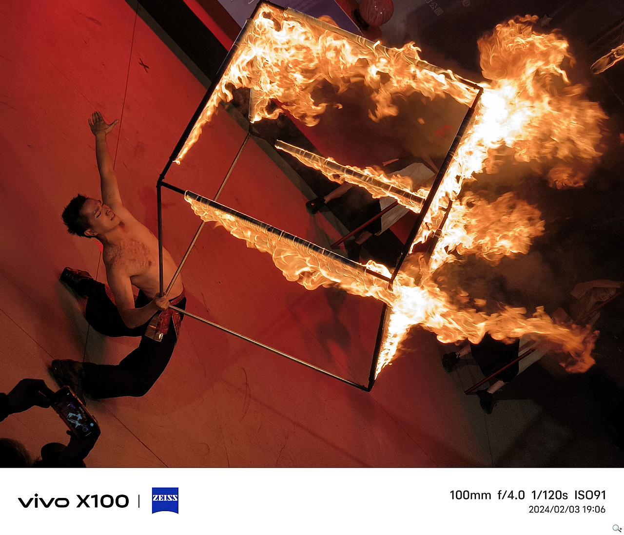 目不轉晴看著表演者舞動著器具上雄雄焰火身影,vivo X100記錄下這一刻驚艷無比的火焰燃起的一瞬間。