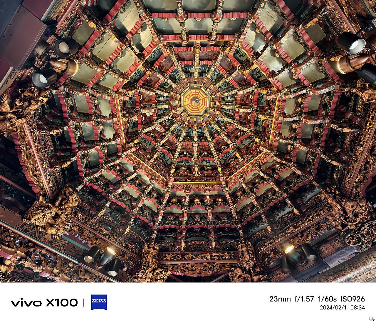 正殿前廳上的藻井,用vivo X100能記錄下歷史身影。
