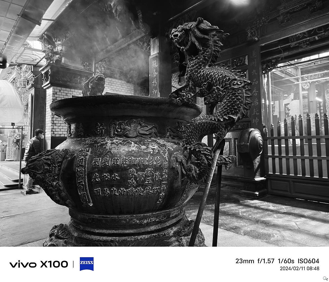 香火鼎爐裊裊煙熏在vivo X100蔡司鏡頭影像濾鏡調校下更顯歲月積累。