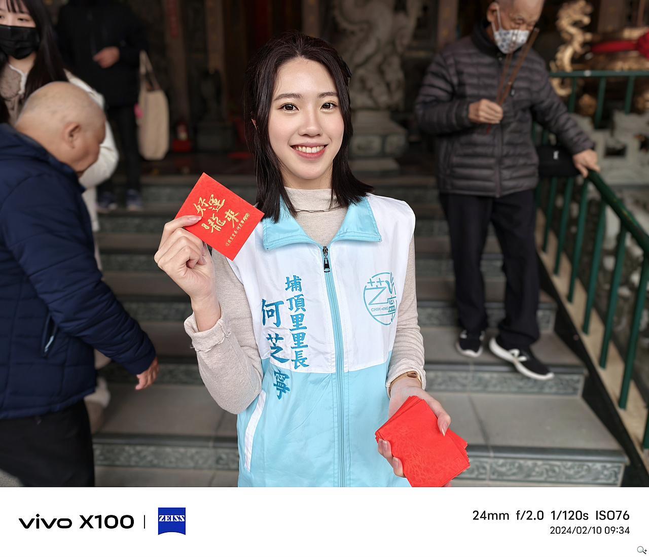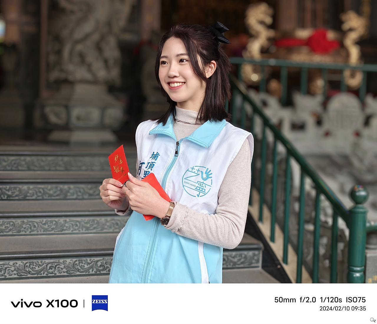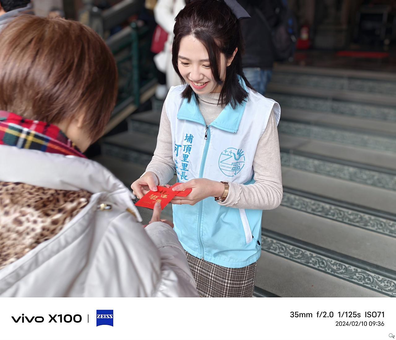 這次帶著vivo X100在新年春節初一前來參拜外,更吸睛的是有認真又漂亮的里長,發放限量的發財金紅包。